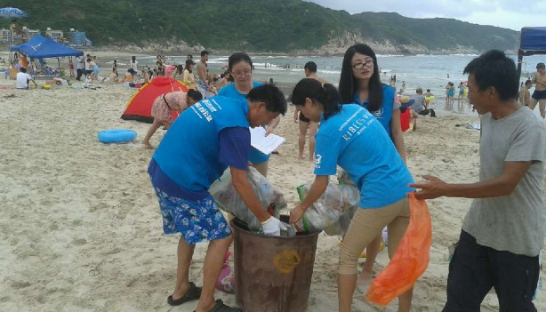 原本计划一大早往东冲出发,不料暴雨连连,出于安全起见,我们商量决定雨后出发。终于,午后时分我们出发了。到达目的地后我们马上开展工作,搭帐篷、挂海报,由于海报上所宣传的范围不一样,我们把海报进行分类后更好地展示出来。然后就是宣传啦~虽然人不是很多,但我们还是很激动的!进行问卷调查的时候很多人是很乐意的,也很支持我们的海洋环保工作,大部分游客对于自己所带来的垃圾也是能自觉地清理好。问及海边安全知识的时候,因暑期原因多数为家庭游客,小朋友居多,值得欣慰的是家长们说都会先给小朋友报名学游泳,叮嘱他们注意安全。接着清理沙滩垃圾啦~由于有部分人不注意导致垃圾残留沙滩,多数为塑料瓶子以及食物垃圾,也由于天气原因,退潮后有很多渔网和树叶,还有玻璃瓶.....