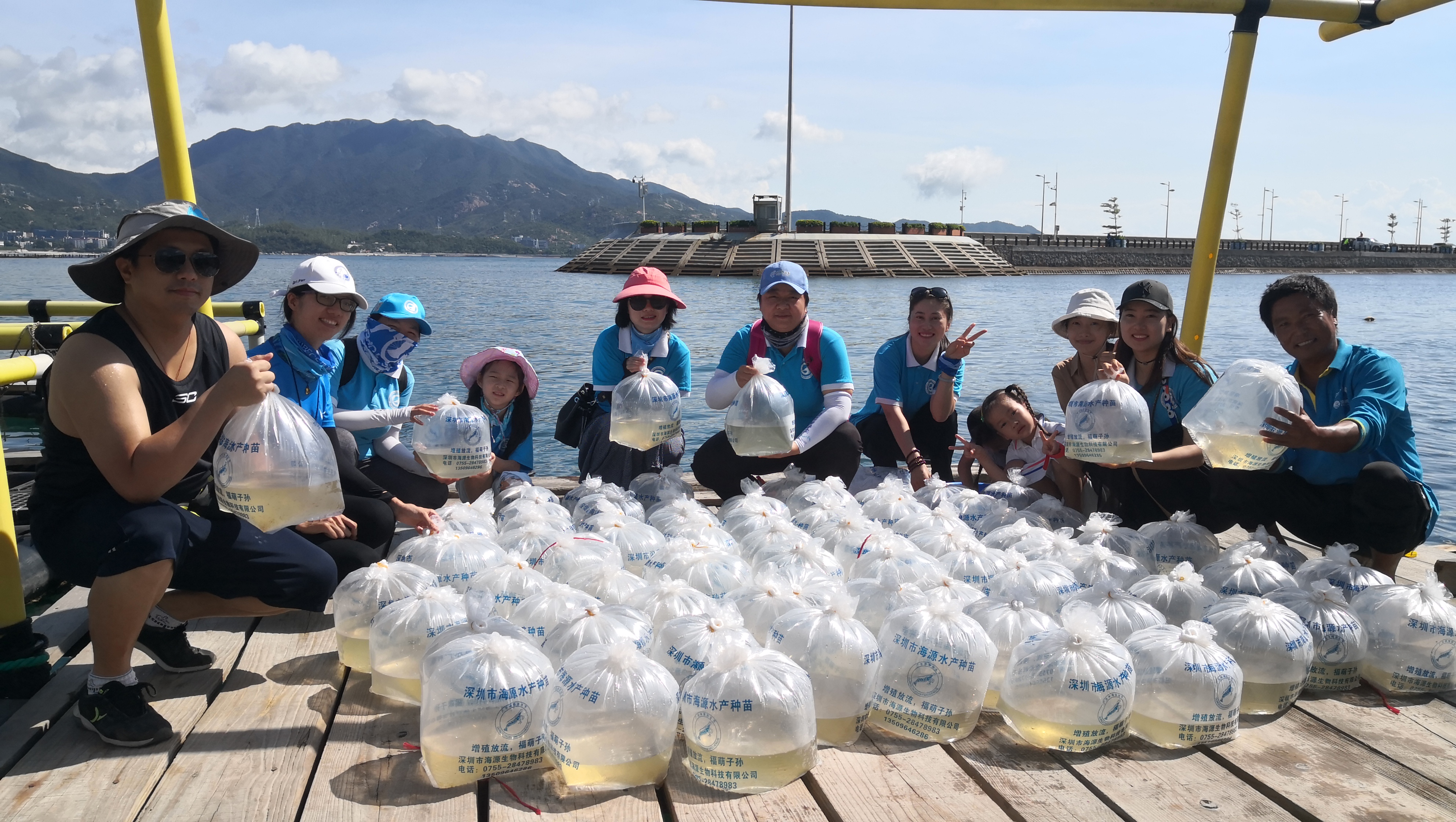 2020年7月11日、12日上午,由深圳市渔业服务与水产技术推广总站指导,深圳市蓝色海洋环境保护协会主办的第八届增殖放流公益活动在中国水产科学研究院南海水产研究所深圳试验基地码头举行,40余名爱心市民齐参与,共放归海洋58万尾黒鲷鱼苗和斑节对虾苗。