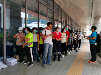每天的志愿者都早早赶在第一批参观者前到达蛇口邮轮母港,由领队先统一简单培训过后,再进入紧张的服务工作。