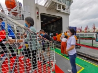大家一起把小旗子都先准备、安装好,让观众能拿到小国旗后开开心心地与三艘船合影
