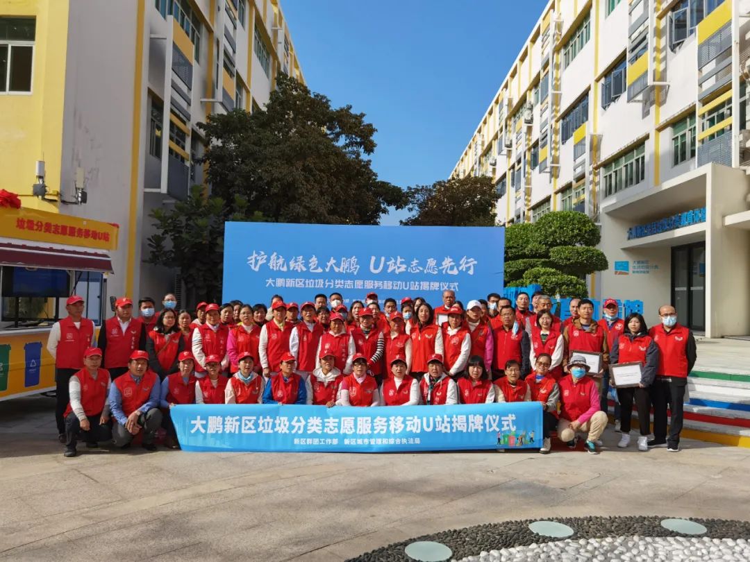 12月22日,由新区群团工作部、新区城市管理和综合执法局、新区义工联联合打造的深圳首个垃圾分类移动U站—— 大鹏新区垃圾分类志愿服务移动U站 揭牌成立。与此同时,新区群团工作部携手新区城市管理和综合执法局,联合 深圳市蓝色海洋环境保护协会等9家公益组织 共同发起的“大鹏新区垃圾分类志愿公益联盟”也在同一天成立。
