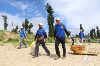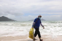 蓝马甲”在沙滩上捡到各种各样的垃圾