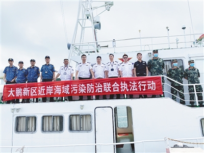 深圳市生态环境局大鹏管理局、市海洋综合执法支队大鹏大队等海洋监管部门组成的大鹏新区海陆统筹海上联合执法队。