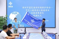 启动仪式上,深圳市蓝色海洋环境保护协会秘书长马海鹏向 " 志愿者服务队 " 授旗,志愿者服务队全体队员在队长林育铭的带领下,紧握右拳向队旗庄严宣誓。随后,志愿者服务队与深圳市海洋综合执法支队宝安大队携手同行,联合开展了净滩公益志愿活动。