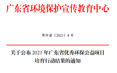 关于公布 2021 年广东省优秀环保公益项目培育行动结果的通知