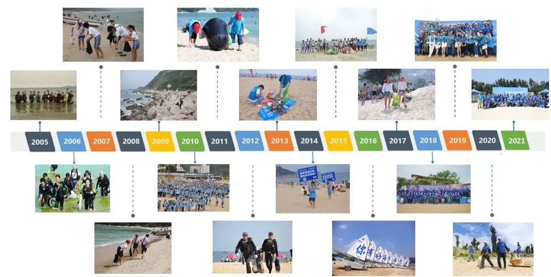 风雨兼程19年, 从2002年小梅沙海洋馆一群潜水员的蓝色海洋梦,到2005年的“种梦”成功——注册成为国内首家以海洋环保为主题的非营利性社会团体,到2008年在大梅沙湾游艇会召开第一届会员大会,2011年发起万人蓝色宣言并先后多次被央视报道,2017年成立党支部并成为AAAAA等级社会组织,2020年被评为 深圳慈善典范机构,2021年被评为广东省学雷锋志愿服务先进典型“最佳志愿服务组织……