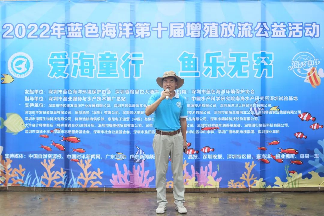 副会长彭声表示:民间增殖放流活动是由深圳市蓝色海洋环境保护协会和深圳香格里拉大酒店协会共同发起,今年是第十年了,在各界人士支持下,一共有3500多人参与,共放流近870万鱼虾苗,获得参与公众的认同,每年都有亲子、闺蜜、小夫妻、一家老小都结伴参与!