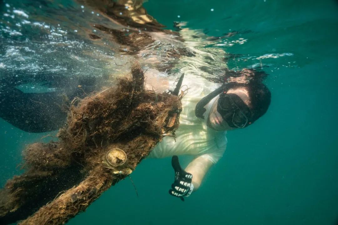 启动仪式后,由深圳自由潜水促进会的16名自由潜潜水员携带者网袋潜入海底捡拾垃圾,成为大海御用“环卫工”。为了让潜水员可以高效的继续第二、三轮清理活动,蓝色海洋组织了3名接应志愿者守候在海岸边,为潜水员更换垃圾网袋,并进行垃圾分类,向现场游客宣传垃圾分类的相关知识,可爱的“海洋环卫工”们共清理了25.86公斤海底垃圾,主要是渔网。潜水员代表英杰表示:“我们深圳自由潜水促进会从2013年起多次参与清洁日活动,由原来海底垃圾捡不过来,到现在到处找垃圾捡,我们近海的海底环境在大家共同努力下,逐年改善,是我们每位海洋志愿者的骄傲!”正是有这些无私的志愿者们,海洋清洁任务才能一代接一代地传承下来,获得社会对零碳海洋的关注!
