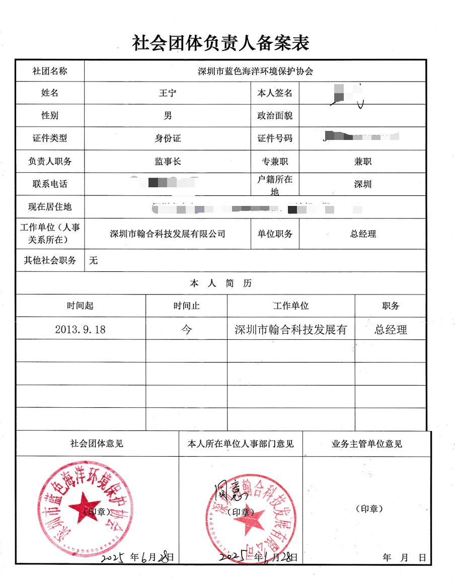 :根据《深圳市蓝色海洋环境保护协会社会团体章程》及选举相关规定,经推荐/提名/资格审查,现将第五届理事会监事会主要负责人资料公示如下