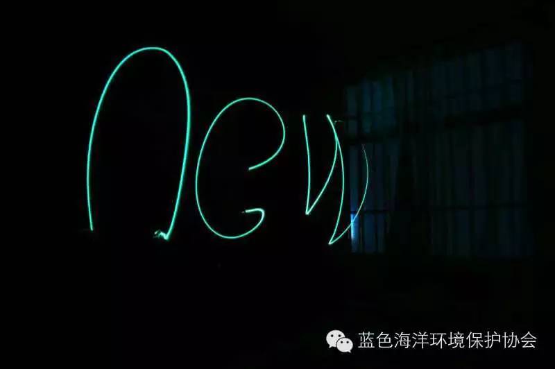 2015年最后时光,BOCA志愿者阿成(微信号@Action的‘’根聚地‘’-迷你屋)在西涌用光笔写下新年祝福