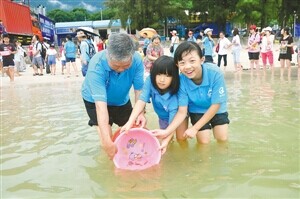 今天是世界海洋日,由海洋环保组织主办的第二届民间增殖放流和海洋清洁公益活动昨日在大鹏新区杨梅坑码头举行,本次公益活动共放流 9.6 万多尾平均长度在 7.23 厘米的黑鲷鱼苗。