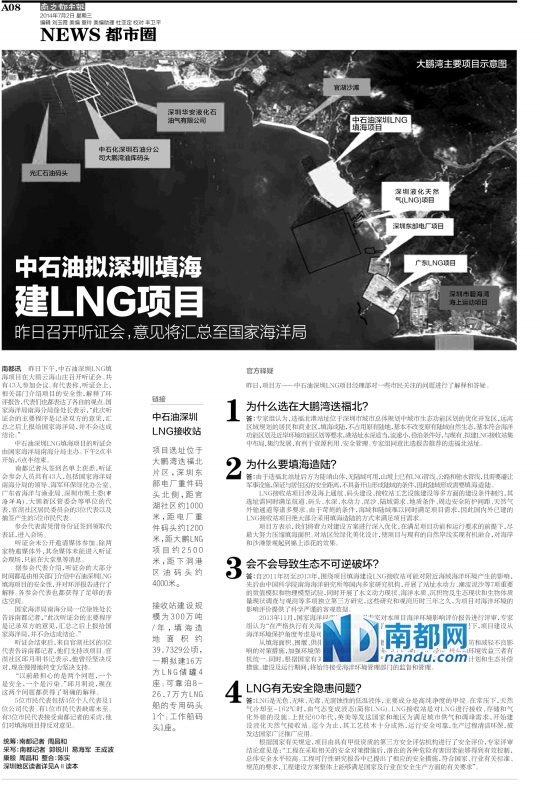 南都7月2日报道了大鹏LN G填海听证会的消息。 |