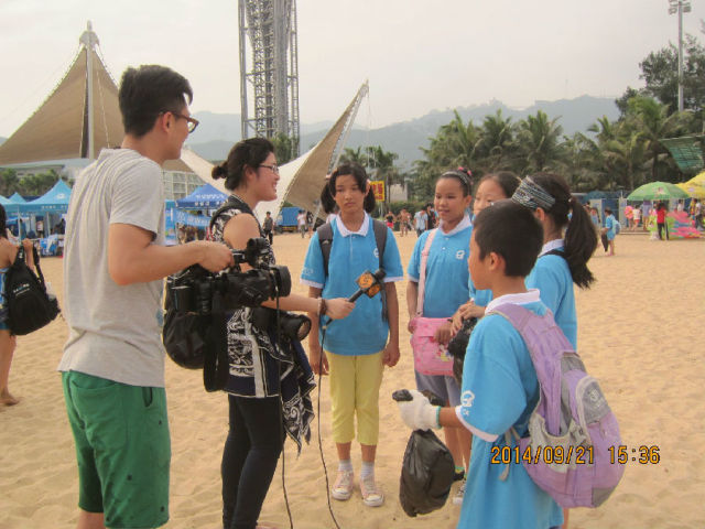9月21日,凤凰卫视《地球宣言》栏目组为制作特辑《人类如何守护那片蔚蓝》而来到2014第十届深圳国际海洋清洁日大梅沙主会场拍摄现场并采访参与活动的各方志愿者,相关视频请点击地址: