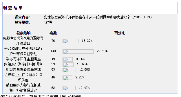 [调查结果]您建议蓝色海洋环保协会在未来一段时间举办哪类活动?(2012.3.13)